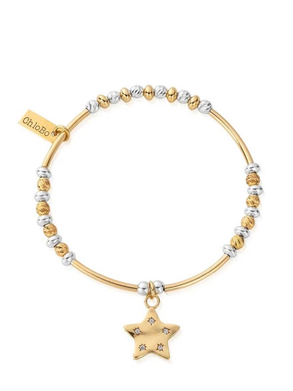 Looking for an eye-catching piece? The ChloBo Sparkle Star Bracelet is the perfect choice. Featuring a mixed metal design combining 18ct gold-plating and sterling silver, this ChloBo bracelet is great for styling with your other favourite pieces. It features a star charm with 5 cubic zirconia stones, adding a touch of sparkle as the light hits.