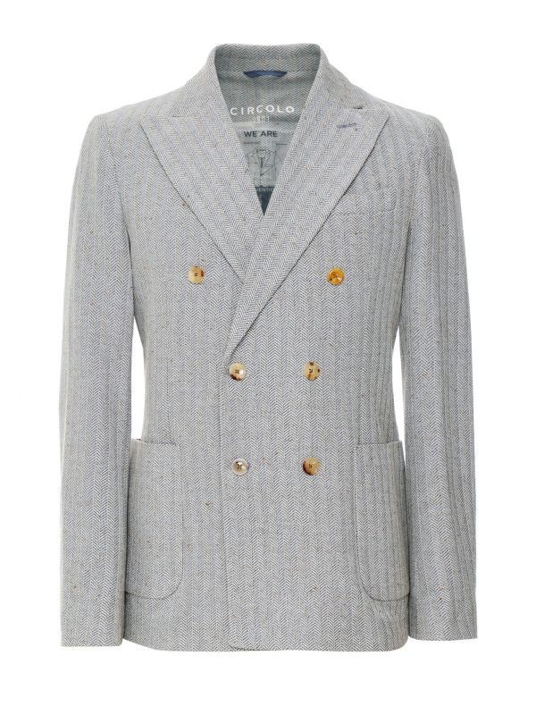 The Circolo 1901 herringbone blazer is set to lend a distinguished edge to your occasion wear. Expertly tailored in a cotton linen blend, the jacket will provide a comfort and essential cooling qualities. Featuring a double breasted silhouette with peak lapels and three pocket front, whilst the herringbone pattern makes for a charming depth of character.