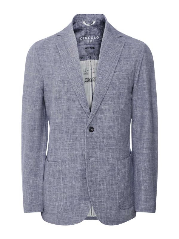 Cut in a slim, flattering silhouette, it features a single-breasted front with horn buttons, notch lapels, and three front pockets for a balanced blend of classic detail and contemporary style. Buttoned cuffs and side vents ensure ease of movement and a polished fit. Versatile and understated, this Circolo 1901 blazer is ideal for smart-casual dressing with a sophisticated Italian twist.