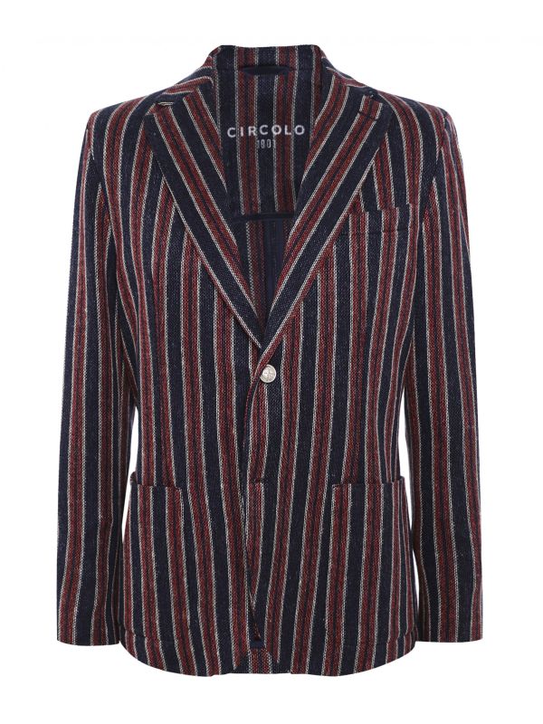 Add a nautical-inspired edge to your summer tailoring with the Circolo 1901 striped jacket. Expertly crafted in a premium stretch cotton, the blazer offers a slim silhouette without compromising on comfort and textured handle. Featuring a two button fastening, notch lapels and double vent, whilst the front bellow pockets add more relaxed detail. The Circolo jacket is finished in an innovative striped print that lends a charming aesthetic.