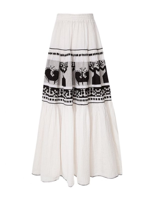 Elevate your summer wardrobe with the Devotion Twins embroidered midi skirt. Made from pure cotton for a lightweight yet luxurious feel, this versatile skirt is super comfortable as well as stylish. It features an elasticated waistband, contrast piping and beautiful embroidered detailing for a unique look.