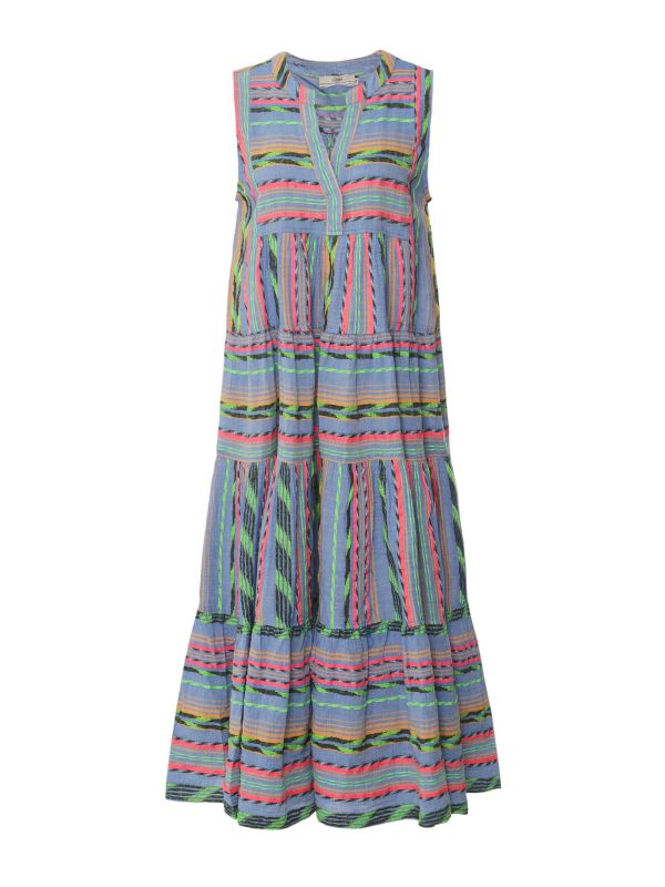 The Devotion Twins Nephritis sleeveless midi dress will be your new summer staple. Constructed from a comfy cotton blend, featuring a stunning multicoloured jacquard pattern throughout on a flowy a-line silhouette. Accessorise with Devotion's stripe knot headband to complete the look.