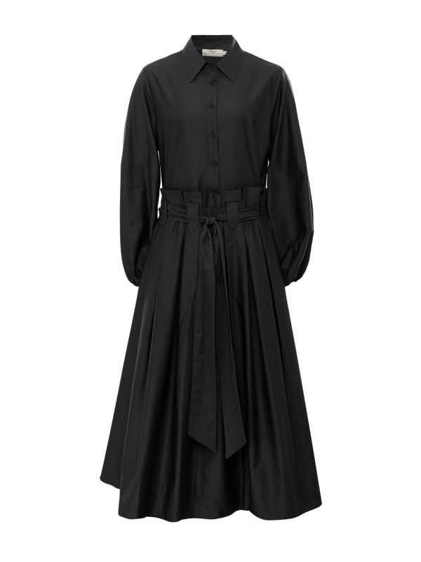 The Devotion Twins Paula Long Dress is a flattering style for this season's events. Made from cotton, this breathable dress is cut to a midi length with an A-line silhouette. A classic shirt design with a collar, long sleeves and elasticated cuffs meets a slightly cinched waist with pleat details, a self-tie belt and a full skirt. This modest midi styles well with a pair of open-toe sandals and a statement clutch.