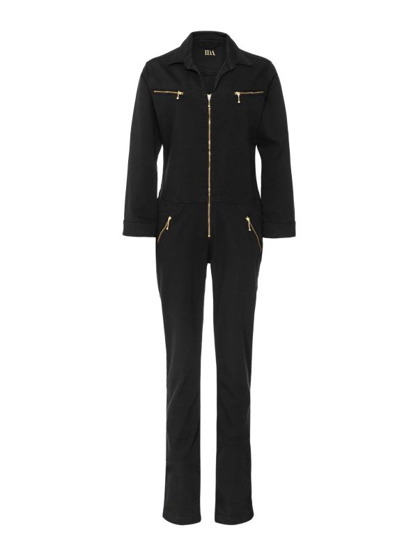 - Gold-tone hardware (black jumpsuit)
