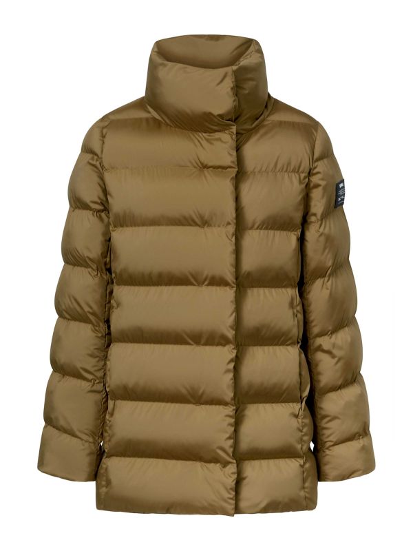 The ECOALF Moore Puffer Jacket is a padded short-length coat designed for cold-weather practicality. The jacket features horizontal baffle quilting and a high funnel collar to trap warmth, with a press-stud front for a neat finish. Discreet zip pockets provide secure storage while a branded sleeve badge adds signature detailing. Cut for a relaxed fit, it layers easily over jumpers or knits and works as a versatile outer layer for everyday wear.