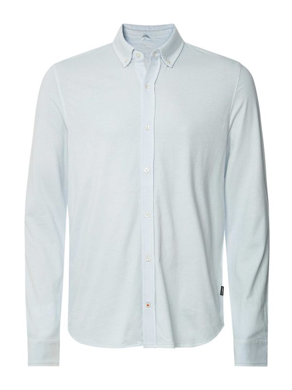 The ECOALF Mole shirt celebrates sustainable fashion with its innovative design and eco-friendly materials. Crafted from a blend of recycled cotton and organic cotton, it combines style with a commitment to reducing environmental impact. Featuring a sophisticated button-down collar and meticulously finished with French seams, this long-sleeved shirt exudes timeless elegance.