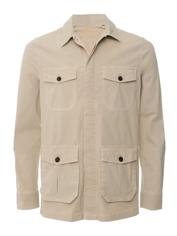 The ECOALF Safari jacket is a sustainable marvel, meticulously crafted from a recycled cotton blend with added stretch for unparalleled comfort and mobility. Boasting a classic shirt collar and adorned with buttoned flap chest pockets and buttoned bellows pockets, it effortlessly blends functionality with style.