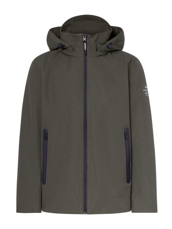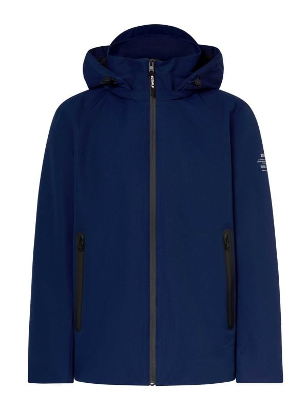 PFC-free and eco-conscious, it features an adjustable hood, zip closure, and practical pockets inside and out. Finished with elasticated inner cuffs and a branded sleeve, this regular-fit ECOALF jacket delivers modern functionality with a responsible mindset.