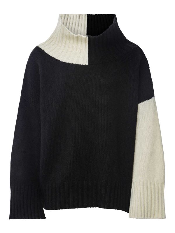 Crafted from a luxurious cashmere and merino wool blend, the Eddy and Ivy Bicolour Jumper is a staple knit elevated by colour block details. It features a high neck split with two colours, ribbed details to the cuffs, neck and hem and a contrast colour to one sleeve. As a classic black knit, this Eddy and Ivy jumper goes with everything, allowing you to style it season after season.