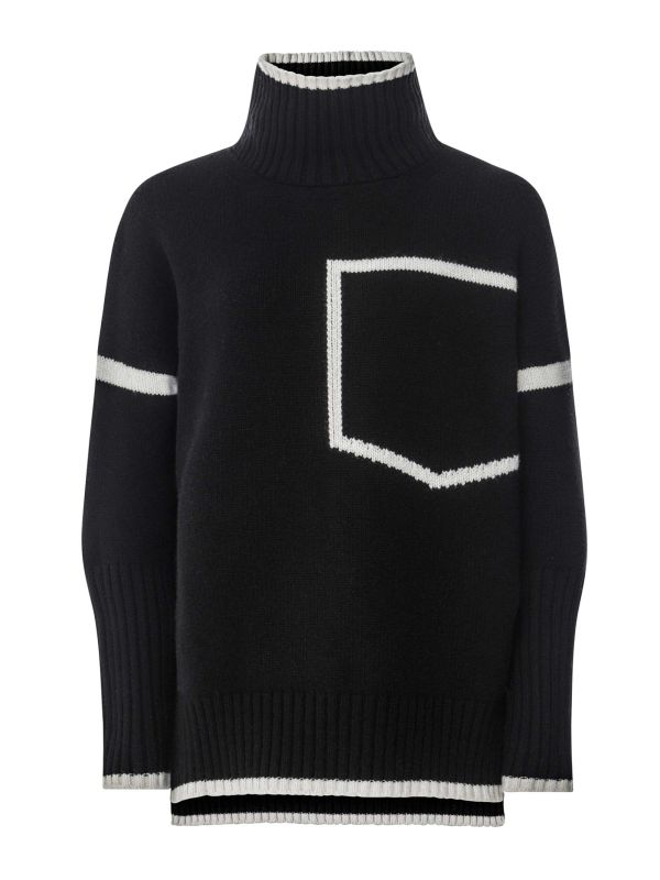 The Eddy and Ivy Contrast Trim Jumper will be the foundation of multiple autumn/winter outfits. It's knitted from a luxurious wool blend of merino and cashmere for a supremely soft finish and has a cosy roll neck and chunky ribbed edges. The standout feature of this Eddy and Ivy jumper is the contrast trims and large square detail resembling a chest pocket.