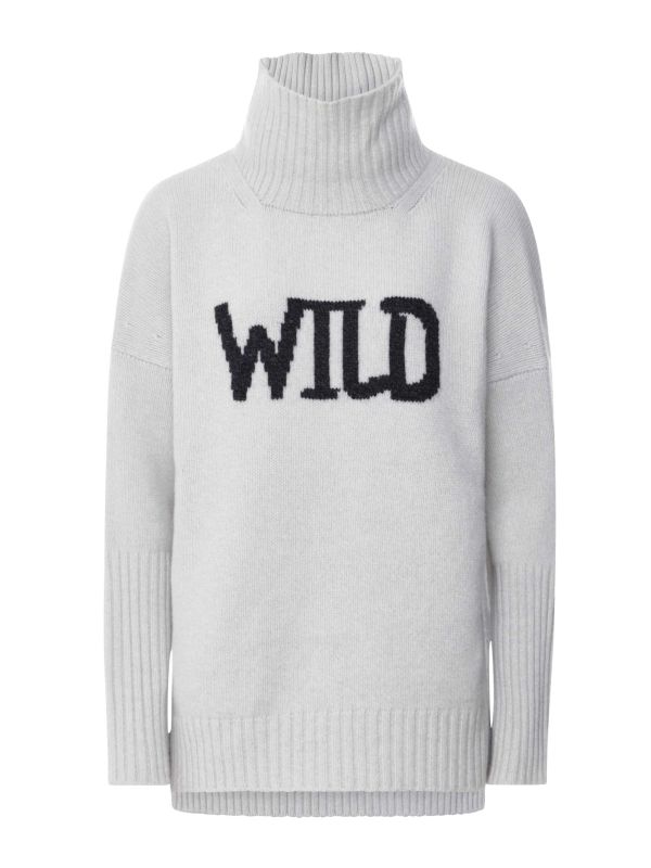 The Eddy and Ivy Wild Jumper is a luxurious knit crafted from extra fine merino wool and cashmere. It features a roll neck, long sleeves with chunky ribbed cuffs, a ribbed hem and the word "WILD" across the chest in black. A stand-out design, this Eddy and Ivy jumper is one for your forever collection. Simply style it with jeans or a satin slip skirt.