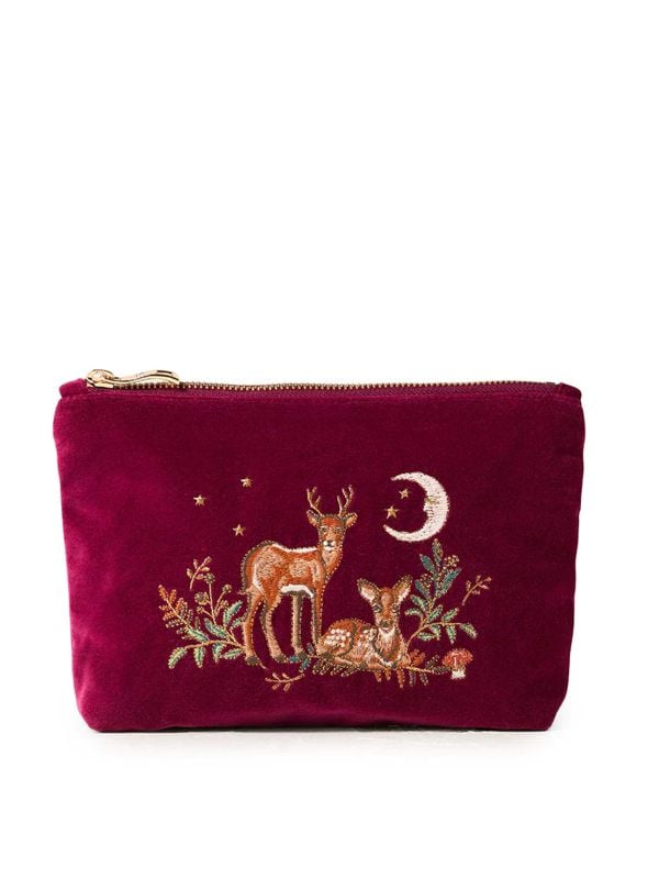 The Enchanted Woodland Mini Pouch arrives as part of the new collection from Elizabeth Scarlett. This mini pouch can be used as a stylish mini clutch or a travel essential for storing smaller belongings. Featuring a plush velvet base embroidered with the label's "Enchanted Woodland" design, with adorable woodland animals and foliage.