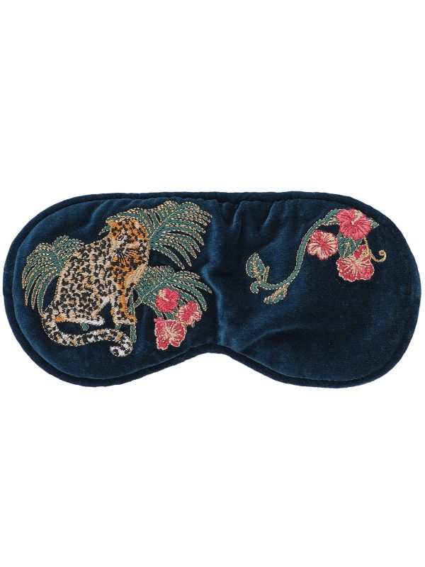 Drift into a dreamy sleep with the Jungle Jaguar eye mask by Elizabeth Scarlett. Crafted from super-soft cotton velvet, this Elizabeth Scarlett eye mask has an elasticated strap for superior comfort and is filled with soothing, dried lavender, guaranteeing relaxation. It showcases the brand's Jungle Cat design with a sleeping jaguar beneath a rainforest canopy. Complete with a cotton drawstring carry bag.
