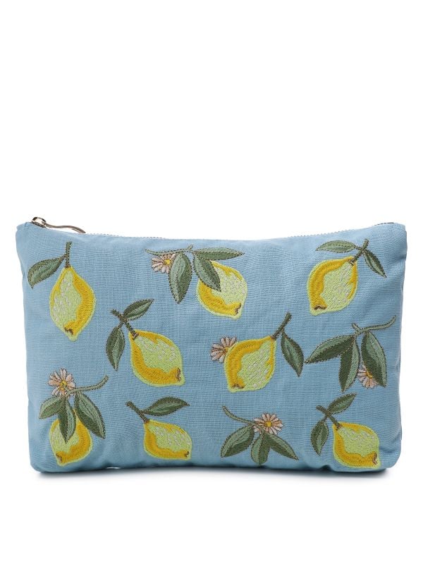 The Lemon Blossom Everyday Pouch by Elizabeth Scarlett is a gorgeous accessory you can carry in your handbag or style as a clutch. Fashioned with a cotton canvas base, this double sided design is embellished with vibrant lemons inspired by citrus groves in the heart of the Amalfi Coast. This Elizabeth Scarlett bag has a pure cotton lining and closes with an engraved gold zip.