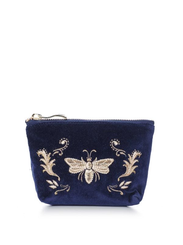 Elizabeth Scarlett's Provençal Bee Coin Purse is the perfect petite accessory for storing cash and other little treasures. Created with the brand's signature plush velvet base and gold zip closure, this Elizabeth Scarlett purse showcases a double-sided design with an ornate gold-threaded honey bee.