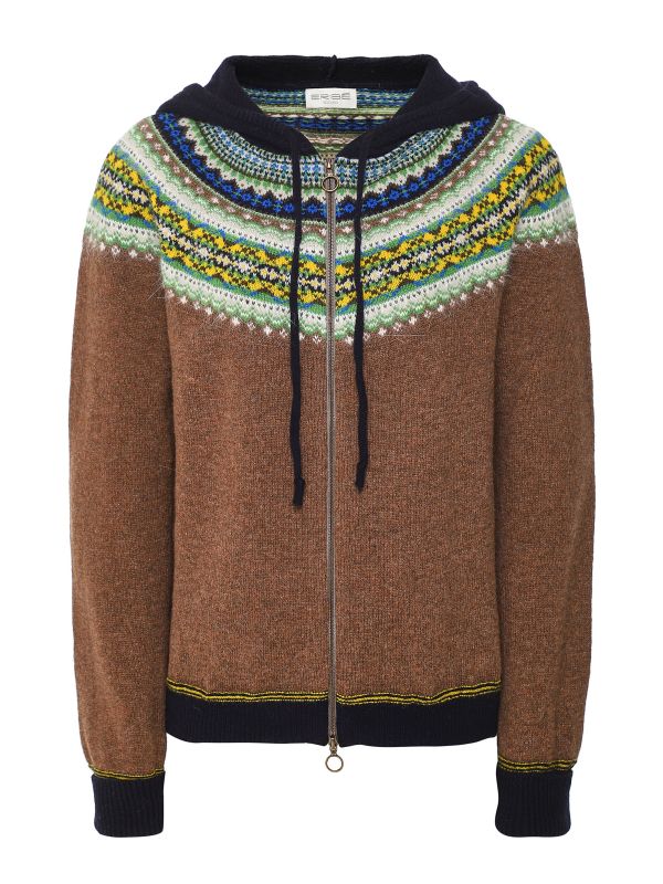 Introduce a vibrant pop of colour to your winterwear with the ERIBÉ Alpine cardigan. Lovingly crafted in Scotland from a merino wool and angora mix, the knit offers a sumptuously soft handle. Featuring a drawstring hood with two-way zip closure, ribbed trims and oversized long cuffs, whilst the Fair Isle pattern evokes heritage inspiration.