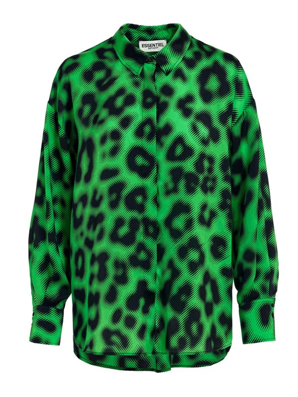 Evening dressing is made easy with the Essentiel Antwerp Evitta shirt. This shirt has classic elements like the pointed collar, dropped shoulders and button-down fastening, but is modernised with the all-over blurred leopard print design. Style it with a midi skirt for a sophisticated evening look.