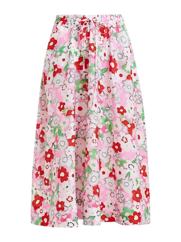 Float through the season in the Juliannne Floral-Jacquard Midi Skirt from Essentiel Antwerp. Cut to a relaxed midi length with a gently flared silhouette, it features an elasticated drawstring waistband and handy side pockets for practical wear. The fabric displays a raised, textured floral motif that adds subtle structure and movement. Pull-on styling keeps the fit easy, while the full skirt drapes cleanly from the waist. Style with sandals and sneakers in warmer months, or layer with a lightweight jacket and loafers for cooler days.