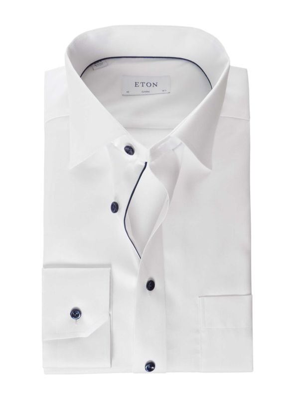 The Eton contrast button shirt delivers timeless sophistication with its meticulously crafted details. Made from luxurious cotton twill, it features a refined spread collar and a sleek French placket for a polished appearance. The addition of a patch pocket adds a touch of casual elegance, while long sleeves with adjustable buttoned cuffs ensure a perfect fit.