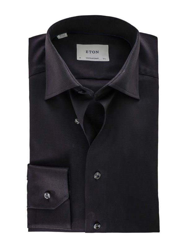 The Eton dobby shirt is a sophisticated wardrobe essential, crafted from premium cotton dobby with a subtle textured pattern for refined style. Its easy-iron, wrinkle-resistant fabric ensures a crisp, polished look throughout the day. Featuring a cut-away collar, French placket, long sleeves, and adjustable button cuffs, the Eton shirt combines classic tailoring with modern design. With a contemporary fit, it offers a flattering silhouette that’s perfect for both professional settings and smart-casual occasions.
