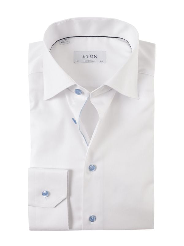 Designed to complement any look effortlessly, the Eton contemporary fit twill shirt is ideal for both business and leisure dressing. Cut from the label's signature medium weight twill fabric, the universal shirt can be teamed with denim for a laid-back appearance as well as layered under your go-to suits for a dash of luxe refinement. Complete with contrasting piping and matching buttons to showcase a sophisticated, yet modern appearance.
