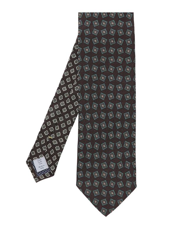 The Eton Medallion Print Silk Tie is a patterned accessory crafted with a fine woven finish and a classic pointed blade tip. Detailed with a contrasting polka-dot underside and a stitched keeper loop, it balances decorative interest with structured construction. The reverse features an Eton label and the tie is made in Italy, reflecting meticulous tailoring. Pair with a crisp shirt or a tailored jacket to lift formal or smart-casual looks.