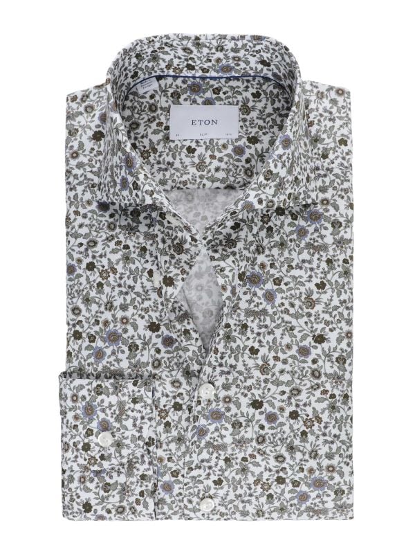 The modern spread collar and sleek French placket enhance its sharp, contemporary feel, while adjustable button cuffs allow for a personalised fit. Finished with an elegant floral print, the Eton shirt is the perfect choice for smart occasions with a creative twist.