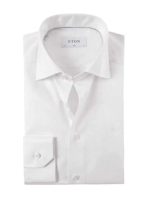 Keep your working look classic with an Eton plain shirt. The slim fit will offer a more contemporary silhouette and accentuate a natural masculine figure, whilst the shirt is expertly crafted from a twill cotton that offers fantastic structure and drape. Couple your shirt by with a playful patterned tie and introduce some savvy character to the office.