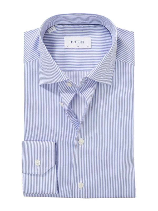 The classic striped pattern adds visual interest without compromising on sophistication, making it a versatile addition to any wardrobe. Ideal for both professional settings and smart-casual outings, this Eton shirt effortlessly balances style with comfort.