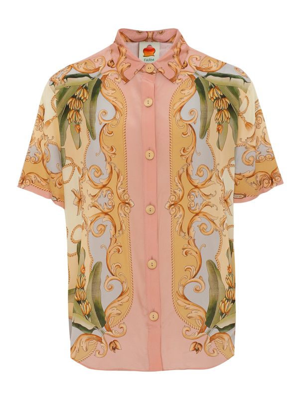 The FARM Rio Banana Royalty Kaleidoscope Shirt is cut from 100% viscose so it's lightweight and silky feeling. Featuring a classic shirt design, this FARM Rio shirt has a collar neckline, a button-up front, short sleeves and an all-over kaleidoscopic print with floral patterns. Wear it with your favourite shorts for a stylish summer look.