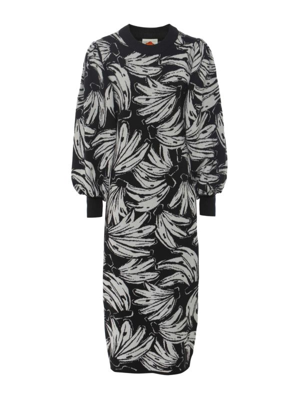 The Black Bossa Banana Knit Dress from Brazilian label Farm Rio is a punchy style for your cold-weather collection.