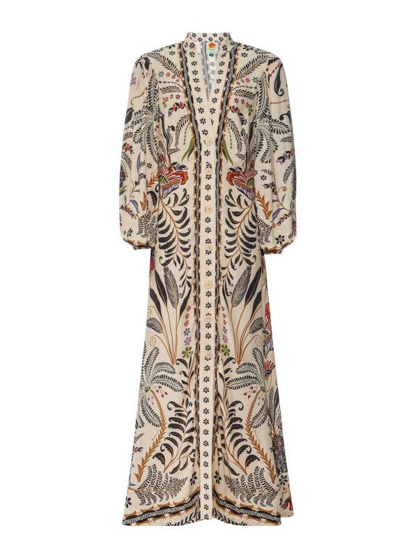 The long sleeves provide a balanced look, making it ideal for transitional seasons. Adorned with a vibrant botanical print, this Farm Rio dress exudes a lively, modern vibe that is sure to turn heads at any occasion. Whether you're heading to a garden party or a casual brunch, this dress will have you feeling effortlessly stylish.
