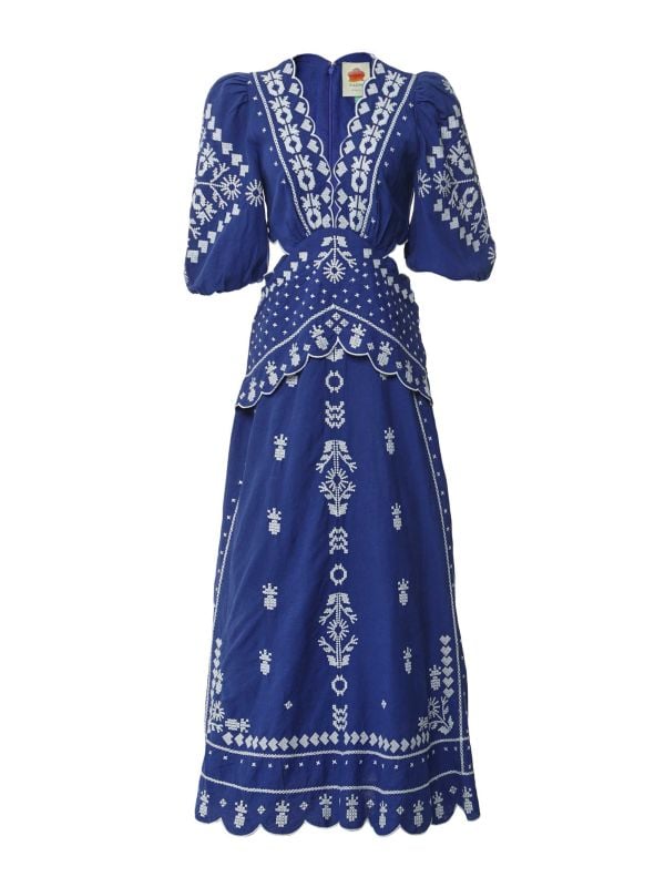 Elevate your style in the Farm Rio Embroidered Cut-Out midi dress. This feminine midi length dress is cut for a flattering fit with a low V neckline with scalloped edges, short puff sleeves, side cut-out details at the waist and a floaty skirt. This dress further stands out with its delicate embroidery details. From garden parties to weddings, this dress is a style you'll wear on repeat.