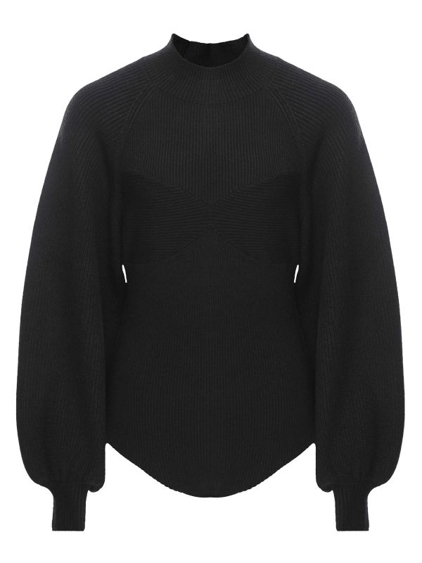 The Black Knit Bodysuit by Farm Rio is a versatile style that slips seamlessly into a capsule wardrobe. This chunky knit bodysuit showcases an elegant high neckline with dramatic balloon sleeves and an open back with twist detail. These sophisticated details combined with a cosy and comfortable fit make this Farm Rio bodysuit a wardrobe staple, taking you effortlessly from day to night.