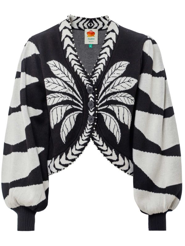 Liven up your collection with the FARM Rio Palms Graphic Knit Cardigan, a bold monochrome piece. Featuring a V neckline, button fastening, voluminous sleeves and a curved, cropped hem at the front, it's full of elegant details for statement dressing. This FARM Rio cardigan is complete with a black and white palm leaf motif with bead-embellished trims.