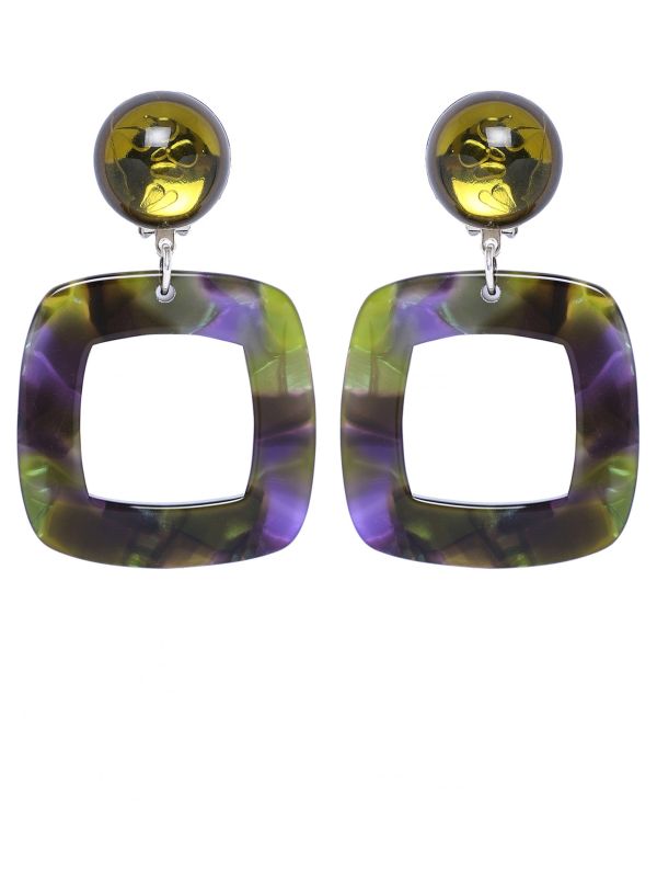 The Francine Bramli Valentine earrings are perfect for adding excitement to any outfit. Beautifully crafted from natural resin made from cotton flowers, the earrings offer a circle detail with a multicoloured square below. Finished with a clip on fastening, these earrings will add an effortless style to your upcoming occasions.
