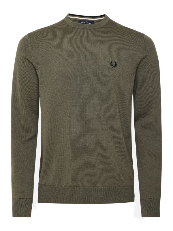 The Fred Perry crew neck sweater draws inspiration from classic sportswear. Engineered in a blend of cotton and ethically sourced merino wool, the pullover ensures a super soft and lightweight handle. Featuring a crew neckline and ribbed trims, whilst the uniform green hue is offset with the label's Laurel Wreath in navy.