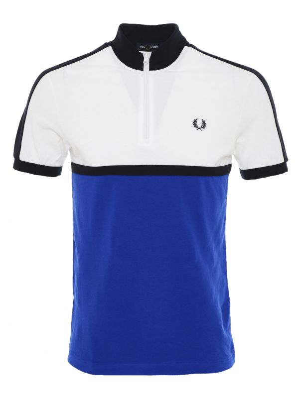 The Fred Perry colour block polo shirt reinterprets classic cycling jerseys. Cut to a regular and crafted in breathable cotton pique, the polo ensures day-long comfort. Featuring a zip fastening funnel neck, cut-and-sew panel design and a super clean-line silhouette, whilst the embroidered Laurel Wreath adds a signature Fred Perry finish.