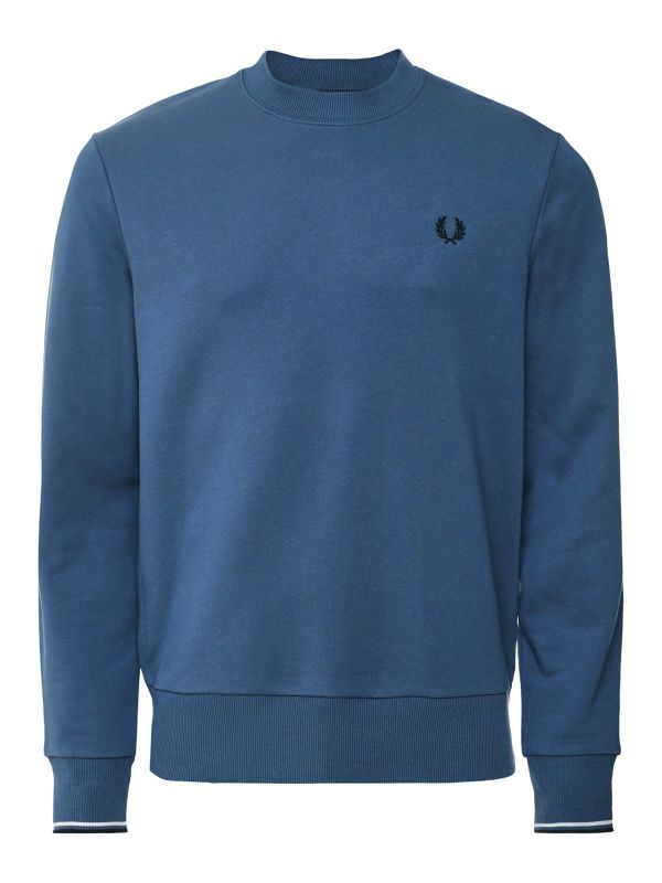 Upgrade your essential leisurewear with the Fred Perry crew sweatshirt. Engineered in a cotton loopback, the midnight blue sweatshirt will ensure day-long comfort and a super soft handle. Featuring a classic crew neckline and ribbed trims, whilst the embroidered Laurel Wreath and twin tipped cuffs add iconic Fred Perry detail.
