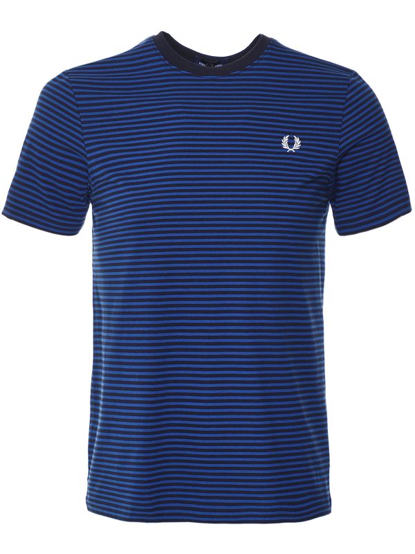 Freshen up your summer casuals with the Fred Perry fine stripe t-shirt. Crafted in a soft cotton jersey, the blue tee features a ribbed crew neck and short sleeves, with the fine stripe pattern lending a stylish nautical-inspired aesthetic. The Fred Perry t-shirt is complete with an embroidered Laurel Wreath for an iconic finish.