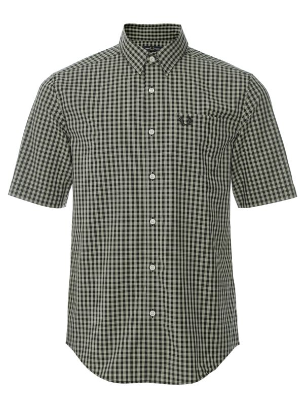 The Fred Perry Gingham Short Sleeve Shirt is tailored from 100% cotton with a button-down collar and a neat button-through front. Designed with a single chest pocket embroidered with the signature laurel, it features a Center back box pleat and a curved hem to be worn tucked or untucked. Short sleeves and a considered cut give a smart-casual silhouette that pairs equally well with jeans or tailored Pants. Durable construction and subtle detailing make it an easy choice for seasonal dressing without compromising on finish.