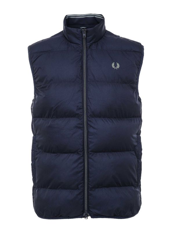 The wadded baffle quilting adds warmth without bulk, while the high neck and two-way zip closure lock in comfort. Finished with welt pockets and the embroidered Laurel Wreath, this regular fit Fred Perry gilet is a versatile piece you can throw over a tee, knit, or hoodie for an easy extra layer.