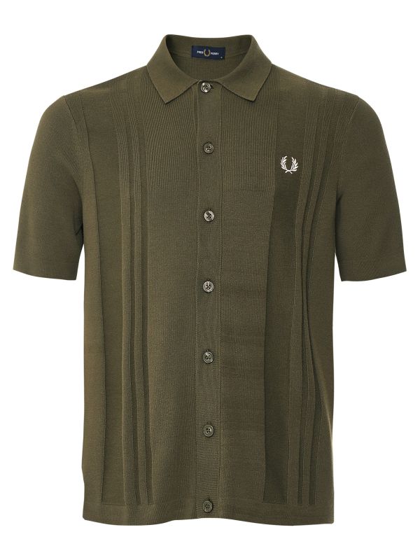 The Fred Perry knitted shirt exudes retro vibes. Engineered in a combed cotton, the short sleeve shirt offers unbeatable softness with a flattering slim fit. Featuring a pointed collar, ribbed cuffs and button-through closure, whilst the tonal striped design lends handsome depth.