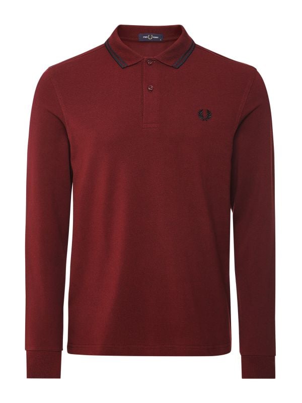 The Fred Perry M3636 polo is a long sleeve adaptation of the label's famous style. Engineered in cotton pique for optimum comfort and breathability, the polo shirt has been cut to a slightly slim shape for a contemporary silhouette. Featuring long sleeves, two button placket and ribbed cuffs, whilst the oxblood hue is offset with signature details in black.