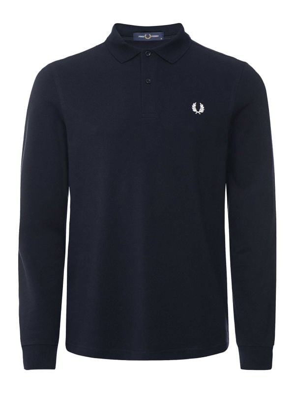 The Fred Perry long sleeve polo is an adaptation of the label's famous style. Engineered in cotton pique for optimum comfort and breathability, the polo shirt has been cut to a regular fit for a comfortable silhouette. Featuring long sleeves, two button placket and ribbed cuffs, whilst the navy hue is offset with signature Laurel Wreath in white.
