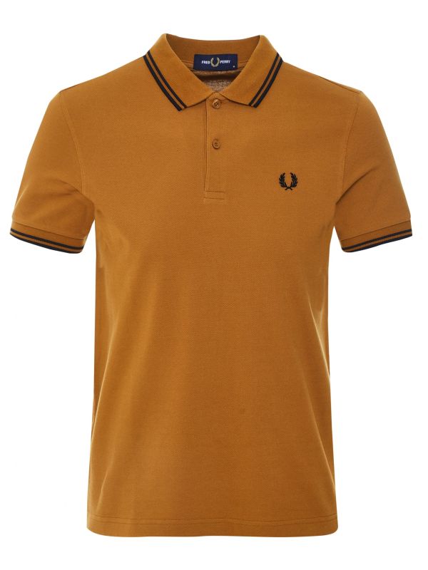 Embrace sub-culture style this season with the Fred Perry twin tipped polo. Engineered in a traditional cotton pique, the short sleeve polo shirt has been cut to a slightly slimmer silhouette than the label's M12 shirt. Featuring a flat knit collar and cuffs, two button placket and embroidered Laurel Wreath, whilst the black twin tipping offsets the dark caramel hue for a striking finish.