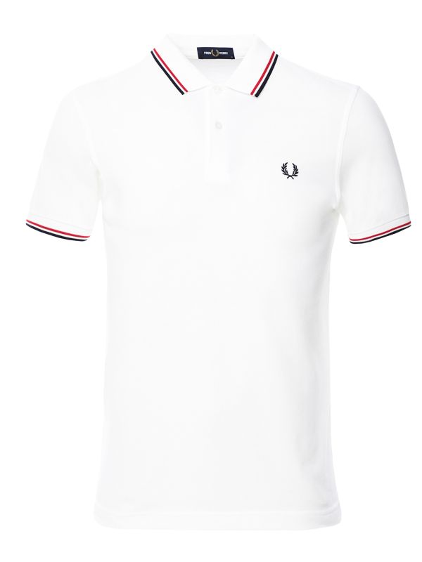 Add a mainstay into your wardrobe with the Fred Perry twin tipped polo shirt. Crafted in a traditional pique cotton, the white polo has been cut to accentuate an athletic silhouette. Featuring a ribbed collar and cuffs, two button placket and embroidered Laurel Wreath, whilst the navy and red twin tipping provides a signature aesthetic synonymous with the British label.