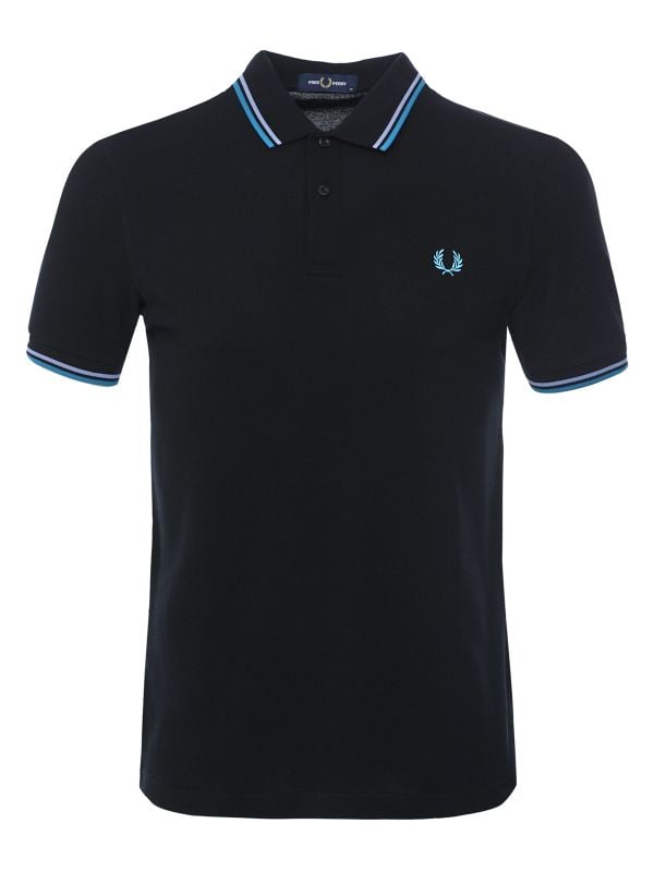 The Fred Perry M3600 polo shirt exemplifies timeless style and modern sustainability with its meticulous design and eco-friendly materials. Crafted from breathable cotton pique, this black hue polo features a distinctive twin tipped collar and cuffs in light smoke and runaway bay ocean, adding a subtle contrast.