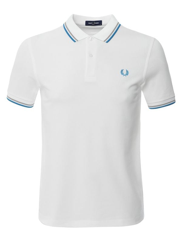 The Fred Perry M3600 polo shirt is a timeless classic crafted from premium cotton pique, ensuring both comfort and durability. Its pristine snow white hue serves as a canvas for the subtle yet striking details, such as the twin-tipped collar and cuffs in warm grey and ocean shades, adding a contemporary twist to its traditional design.