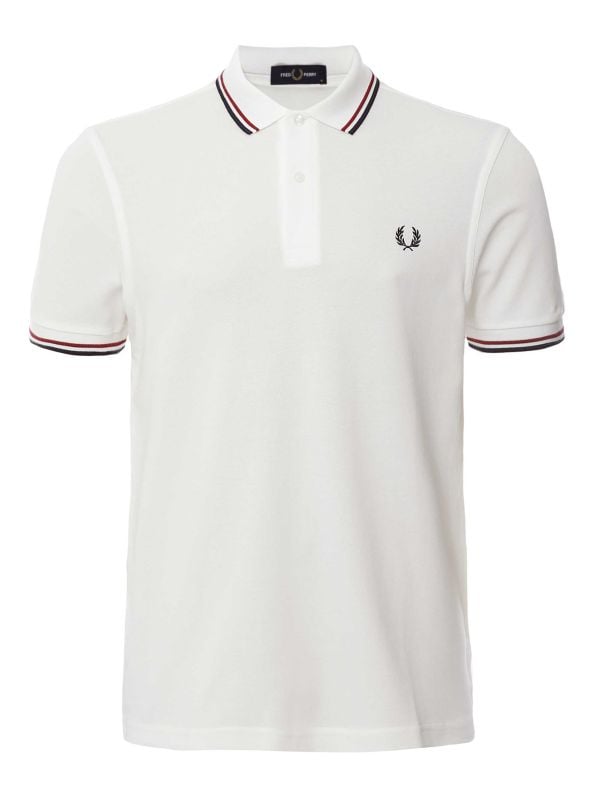 The Fred Perry M3600 polo shirt is a classic wardrobe staple, renowned for its premium quality and timeless design. Crafted from durable cotton pique, this polo features a signature twin tipped collar and cuffs in burnt red and navy, adding a distinctive touch to its snow white base. The polo shirt is designed with a two-button placket for a sleek and versatile look.
